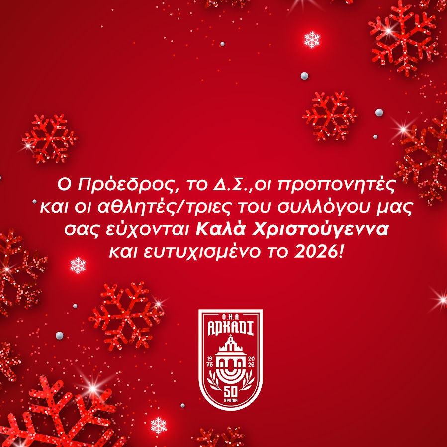 Καλά Χριστούγεννα και ευτυχισμένο το 2026! Ο Πρόεδρος, το Δ.Σ., οι προπονητές και οι αθλητές/τριες του συλλόγου μας σας εύχονται Καλά Χριστούγεννα και ευτυχισμένο το 2026!